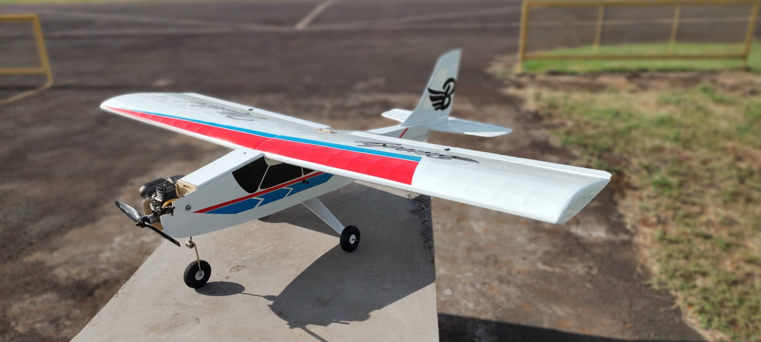 O primeiro treinador da Bluesky. Com 1,5m de envergadura, o kit promete a melhor experiência no aprendizado do piloto. Para aqueles que já voam, um modelo indispensável para os finais de semana. Pode ser motorizado a combustão ou elétrico.