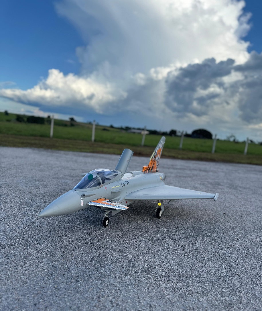 Piloto: Sim! Antes do Eurofighter, eu tive o Yak 130 da FMS 70mm e o Super Scorpion, também da FMS, com 90mm. O Eurofighter é meu primeiro jato da Freewing, e logo de cara deu pra perceber a diferença. Comparando com os outros dois, o modelo da Freewing tem um acabamento muito superior. Ele é mais detalhado, dá pra ver que foi feito com mais capricho. O voo também é bem diferente, especialmente porque ele é um asa-delta. Essa transição foi desafiadora no começo, mas bem interessante.