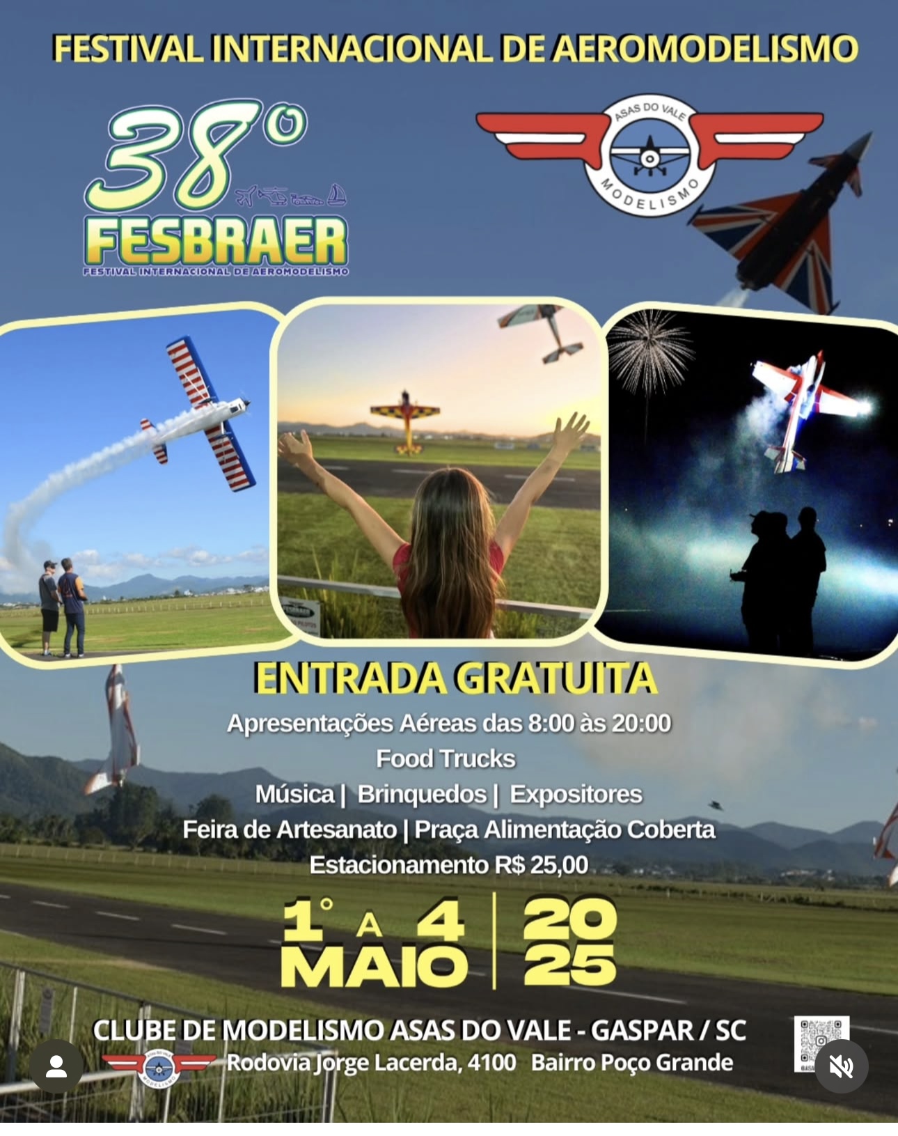 Prepare-se para decolar rumo à emoção! De 1º a 4 de maio de 2025, o céu de Gaspar, Santa Catarina, será palco do 38º FESBRAER – Festival Internacional de Aeromodelismo, o evento mais aguardado pelos entusiastas do modelismo em toda a América Latina. Organizado pelo renomado Clube de Modelismo Asas do Vale, o festival promete quatro dias repletos de adrenalina, manobras incríveis e confraternização entre pilotos e apaixonados pelo hobby.